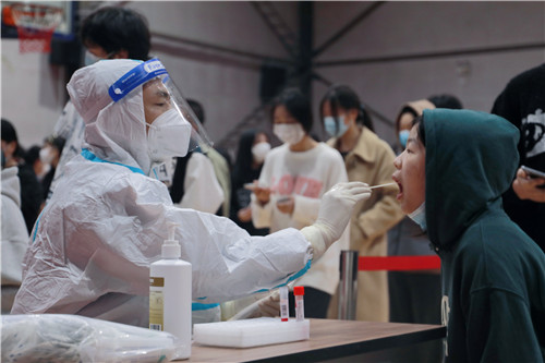 全体师生员工迅速响应号召,按照通知的时段分批有序前来训练馆,排队等候核酸采样。在志愿者的引导下,现场人员佩戴好口罩、保持一米间距、出示健康码、完成信息采集、接受采样,整个核酸采样现场井然有序。从早上8:30到中午13:00,高效顺利完成了11250人的核酸检测采样工作。