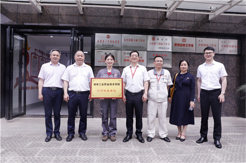 我校党委书记刘建湘(左二)代表学校向企业授牌“实习就业基地”