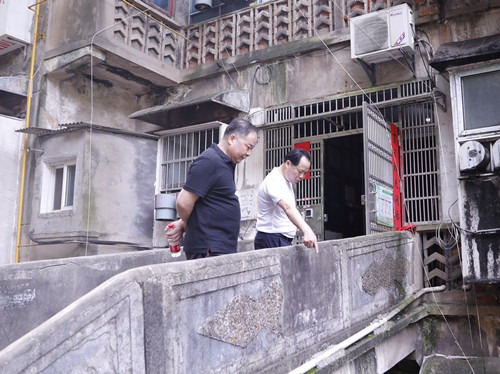 刘建湘一行对雨花校区教师宿舍老旧建筑的基本情况、房屋安全情况、消防安全情况、建筑风貌等方面进行了调研,针对年代久远的8、9栋老旧建筑进行了重点考察。