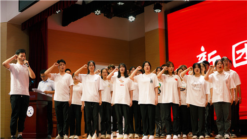 与此同时,22名新入团团员在团旗下庄严宣誓,与老团员一起重温入团誓词。