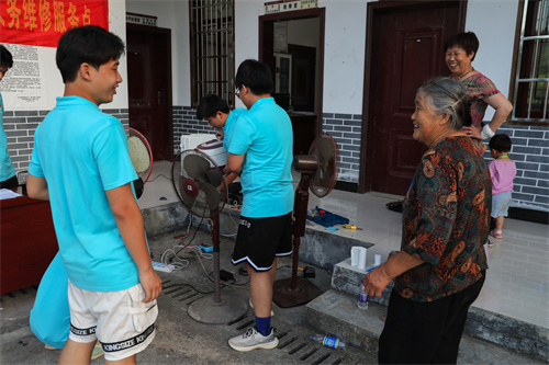 今年的电子义务维修分为定点维修和上门维修两种方式。在维修服务点,小分队队长对村民送来的家电进行信息登记后,队员们对家电进行维修。针对不便移动的家用电器或村民行动不便的情况,队员们开展上门维修服务,大大方便了村民们。村民李奶奶拿到经队员们修理又重新转动起来的风扇时,开心不已,“这些娃娃们看起来年纪不大,修起这些东西来很利索啊。”