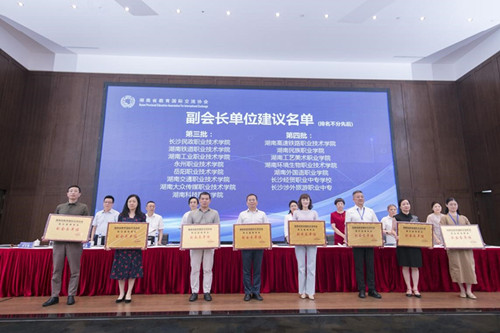 本网讯 7月21日,湖南省教育国际交流协会换届会议暨第五届理事会第一次会员大会在长沙正式召开。湖南省人大常委会原副主任、湖南省政府原副省长唐之享等领导、嘉宾及来自全省各级各类学校的140余家会员单位代表参加此次会议。我校副校长谢希钢受邀出席。