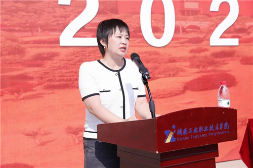 成涛在发言中介绍了学校的办学历史和发展情况。她借用“黄沙百战穿金甲,不破楼兰终不还”“千磨万击还坚劲,任尔东西南北风”“古之立大事者,不惟有超世之才,亦必有坚忍不拔之志”这三句古诗词,希望同学们锤炼报国为民的高昂志气,锻造坚韧不拔的铮铮骨气,涵养奋斗拼搏的厚重底气。她希望大家牢记习近平总书记的嘱托,不负青春,不负韶华,不负时代,珍惜时光好好学习,掌握知识本领,树立正确的世界观、人生观、价值观,系好人生第一粒扣子,走好人生道路,为实现中华民族伟大复兴贡献聪明才智。