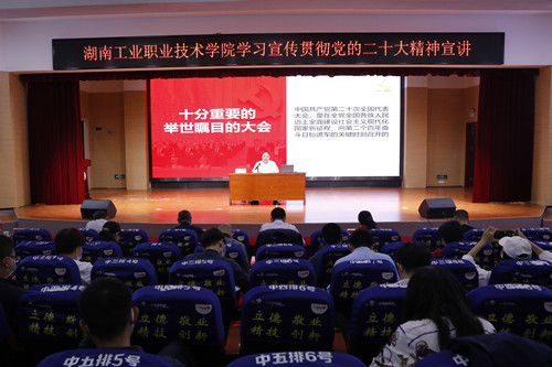 刘建湘从二十大报告相关内容解读、新时代十年职业教育的发展概况、学校如何宣传贯彻党的二十大精神三个方面进行了全面深入的宣讲。