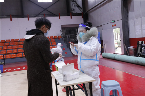 12月6日上午,学校后勤处联系学士街道卫生服务中心在体训馆为学生提供核酸检测现场服务。“从对方同意到核酸检测正式开始,只用了不到40分钟的时间。”后勤处相关负责人介绍,期间,学校临时招募党员志愿者、布置核酸检测台、准备物资、培训志愿者,一切工作秩序井然、有条不紊。