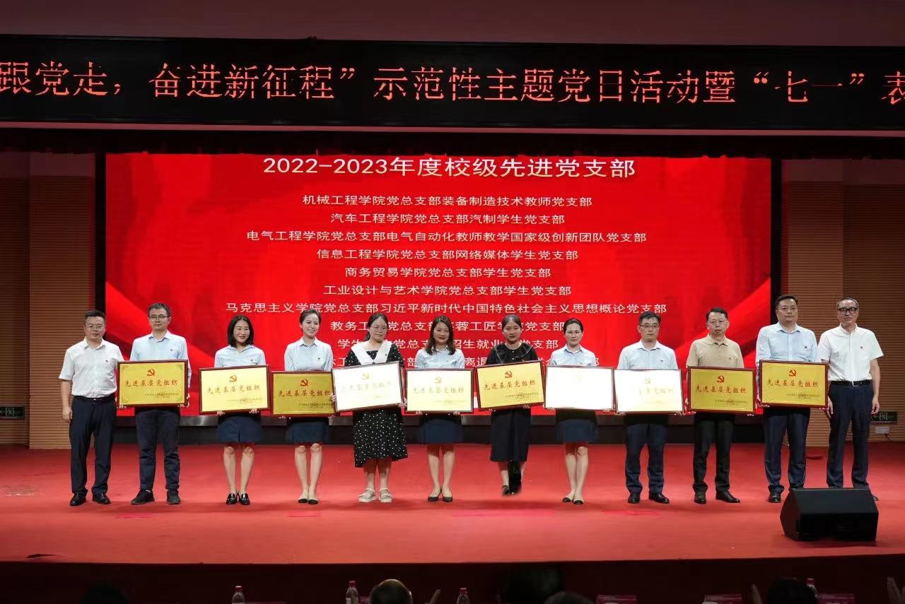 会上,表彰了全省高校党组织“对标争先”计划第三批项目入选集体、个人,学校机械工程学院党总支部立项第三批全省高校党建“标杆院系”,商务贸易学院学生党支部立项第三批全省高校党建“样板支部”,电气工程学院党总支部书记(教师党支部书记)刘峥获评第三批全省高校教师党支部书记“双带头人”标兵,组织人事部(教师工作部)副部长程涛获评第三批全省高校“党务工作示范岗”,汽车工程学院党总支部党员教师邹洪富获评第三批全省高校“青年教工党员示范岗”。
