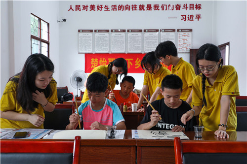 “三下乡”“童心向党 筑梦未来”支教小分队带孩子们写毛笔字