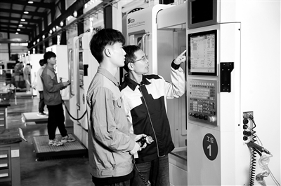九游·官方网站学生在数控技术实训中心开展五轴加工实训。
