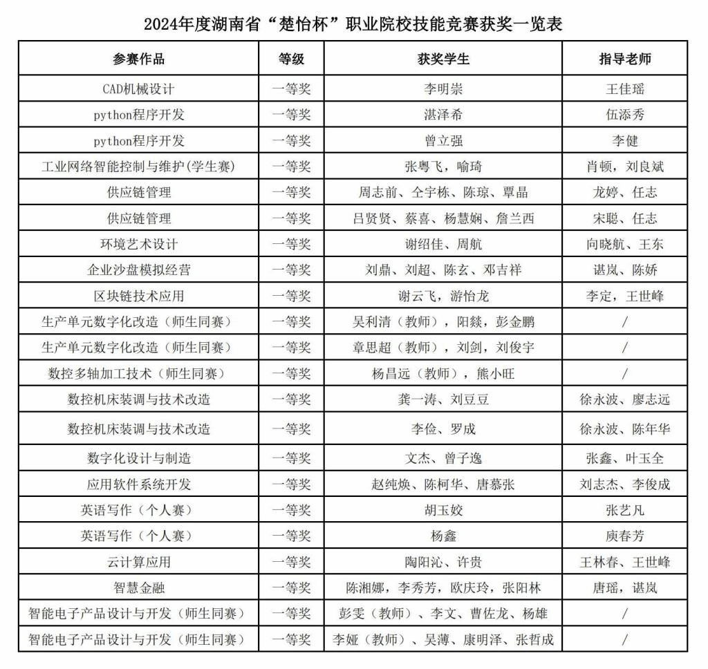 我校荣获2024年度“楚怡杯”湖南省职业院校技能竞赛团体一等奖