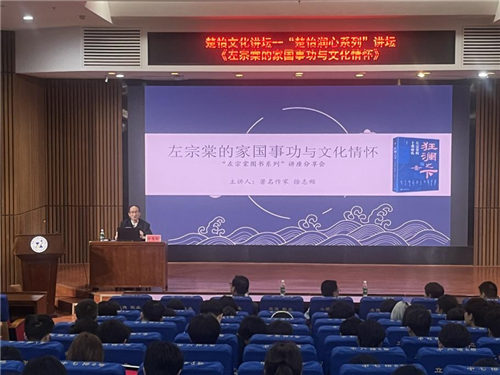 世界读书日首场活动“楚怡文化讲坛”特邀著名作家、北京大学湖湘文化研究会特别文化顾问徐志频带来“楚怡润心系列”专题讲座《左宗棠的家国事功与文化情怀》,学校党委委员、副校长吴铁平致辞。讲座中,徐志频以左宗棠收复新疆的史实为切入点,结合其生平行迹,剖析了其“身无半亩心忧天下”的士人精神,让师生们对左宗棠卓越成就和开拓务实精神有了更全面、更深入的了解。