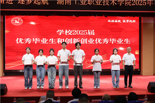 学校党委副书记成涛宣读《湖南省教育厅关于公布湖南省普通高等学校2025届优秀毕业生和创新创业优秀毕业生名单的通知》,我校徐启智等133名学生获评湖南省普通高等学校2025届优秀毕业生称号,李平安等15名学生获评湖南省普通高等学校2025届创新创业优秀毕业生称号。学校副校长谢希钢宣读《关于表彰2025届学校优秀毕业生和创新创业优秀毕业生的决定》,我校吴鹰等202名学生获评2025届学校优秀毕业生称号,宁彪等19名学生获评2025届学校创新创业优秀毕业生称号。学校副校长邹太平宣读《关于聘请2025届校友工作联络员的决定》并颁发聘书,刘建鹏等117名毕业生被聘为校友工作联络员。