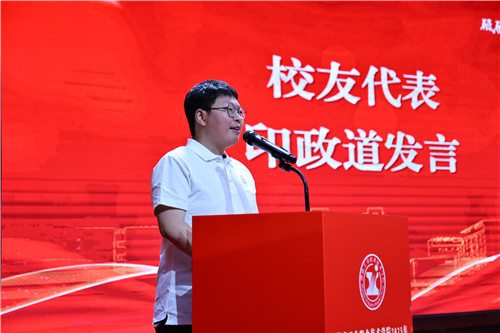 校友代表、2023年西部计划志愿者印政道讲述了毕业后先后在乌鲁却勒镇龙子心小学支教、阿瓦提县团委工作的经历,感恩母校在他心中播撒下服务他人、传递温暖的种子,呼吁更多学弟学妹们到祖国需要的地方去,共同书写新时代的青春华章。