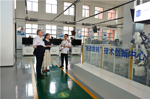 代表团一行先后参观了我校汽车工程学院、机械工程学院和电气工程学院实训中心,深入了解了学校在产教融合、学徒制培养、实训室建设等方面开展的工作,对学校在高端装备制造领域的技术积累和紧跟产业升级步伐的办学特色给予了高度评价。