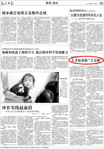 2011年8月24日,《光明日报》以《人才培养的“立交桥”》为题,报道了我院近年来,依托“职教集团”平台,完善校企合作办学机制,拓宽校企合作领域,探索多样化工学结合人才培养模式的成功经验。原文转载如下: