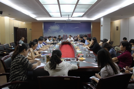 刘建湘在会上通报了学院近期各项工作的进展情况和取得的各项成绩,包括国家示范校验收获得优秀、招生工作的圆满完成和迎新工作中的高报到率、学院教师国家级教学名师奖殊荣的获得、上级部门和领导对学院的关注和重视等等,并希望教职员工们继续努力为学院“后示范”建设出谋划策,将学院全力打造成湖南机械装备制造业高技能人才及海外拓展人才输送和培训基地,成为与产业共生发展、代表高职院校改革方向和先进管理水平的国家示范性院校!