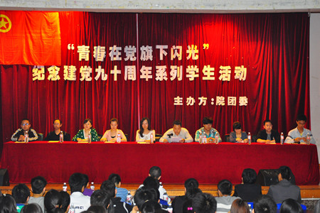 为热烈庆祝中国共产党建党90周年,重温党的奋斗历程,继续发扬党的光荣传统。5月12日晚,我院在大学生活动中心举行了以“青春在党旗下闪光”为主题的纪念建党90周年系列活动开幕式。