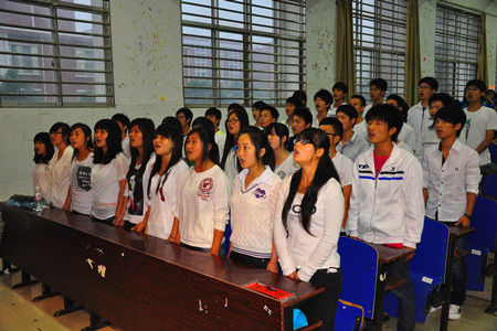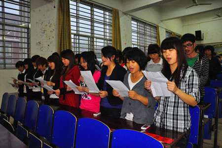 开幕式上,各院、系学生方阵分别进行唱红歌、诗朗诵活动