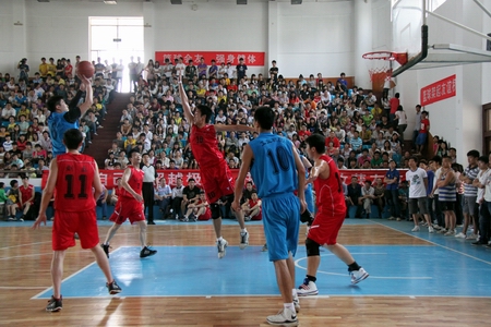 本届比赛采用国家体育总局最新审定的《篮球竞赛规则》,共19支球队报名参赛,依据上届比赛成绩设定工业职院、物流职院、民政职院、环保职院四队为种子队,分别抽签进组,其余十五支球队分别抽签进入A、B、C、D各组。各组进行小组单循环比赛,排出小组全部名次,取小组1、2名进入八强。我院在小组赛中分别以114:62、108:91、105:80轻松击败电气职院、司法警官学院和生物机电职院进入八强,接下来我院分别以114:101、117:87击败郴州职院和民政职院,挺进四强及最后的冠军争夺赛,并夺得冠军宝座,亚军和季军分别由化工职院和民政职院夺得。