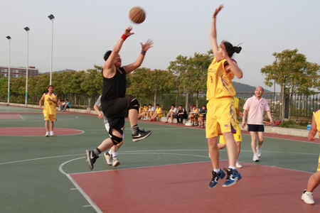 会后,职教集团理事长篮球队与我院学生女子篮球队进行了一场篮球友谊赛。