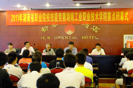 5月7日上午,2011年湖南省职业院校专业技能竞赛我院赛点闭幕式在新东方酒店顺利举行。省派巡视员赖阳春、省派联络员吴甚其、我院副院长及赛点负责人董建国、裁判员代表崔建波等领导、专家、裁判员以及参赛选手出席了闭幕式。闭幕式由我院教务处处长周劲松主持。
