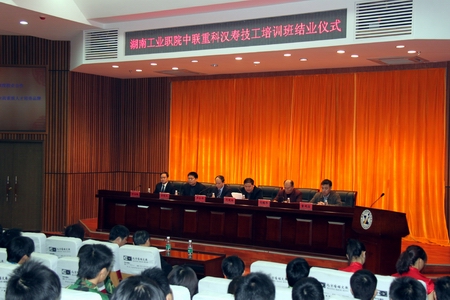 上午10点30分,湖南工院中联重科汉寿技工培训班结业仪式在学院多功能报告厅隆重举行。学院院长刘建湘,副院长刘继平、董建国,中联重科混凝土国际管理公司党委书记、副总经理罗安平,人力资源总监房殿峰,培训主任何云峰等出席了结业仪式。