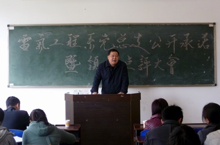 3月14日,电气工程系党总支召开创先争优活动公开承诺暨领导点评大会。学院院长刘建湘、电气工程系系主任及全体党员参加了会议,会议由电气工程系党总支副书记王俊主持。