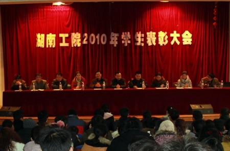 据悉,本次表彰大会涵括了“2010-2011年国家奖助学金表彰”、 “2009-2010学年‘先进班集体’、‘三好学生’以及‘优秀学生干部’表彰”、“勤工助学关爱助学金表彰通报”、“2011年元旦文艺汇演优秀节目表彰”、“湖南省第九届大学生获奖表彰”等多项表彰决定。