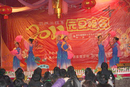 晚会节目形式多样、动静结合,精彩不断、高潮迭起。感情饱满、激情澎湃的朗诵《我爱我的祖国》,充分激发了大家的爱国之情;歌曲《许愿》则表达了对毕业生的衷心祝愿;小品《梁祝》和《天下父母心》更是以雷人的造型、搞笑的动作和精湛的演技搏得场下观众阵阵热烈掌声,整个会场笑声不停,掌声不断。舞蹈《茉莉花》、《天竺少女》和B-BOX串劈砖绝技等节目激情四射、个性张扬;歌曲《王妃》和舞蹈《Free baby街舞秀》更是把全场气氛推向了高潮。音乐剧《三年》以表演和幻灯片的形式真实反映了大学三年的生活,带领观众重温了三年的美好时光;大合唱《启程》则表达了机械工程系师生将以崭新面貌和奋斗信心迎接2011年的挑战和机遇。