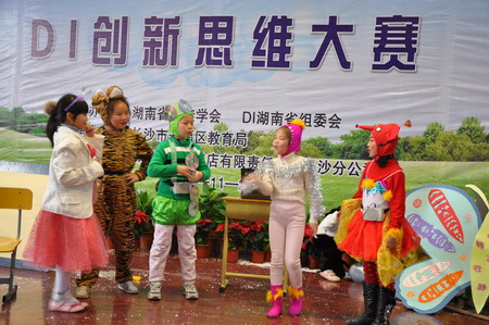 参加本次大赛有长沙市12所学校,共计26支队伍。长沙市青竹湖湘一外国语学校星光队的小队员平均年龄只有6岁,选手们都非常活泼、团结和自信,现场气氛十分活跃。特别是国防科技大学附属小学萤火虫队的演出以昆虫的生活为载体,体现了人与人之间的助人为乐,相互帮助的精神,结合了相声、舞蹈、声乐、舞美造型等表现形式,留给大家深刻的印象。赢得本次大赛二等奖以上的参赛队伍将有机会赴西安参加2010-2011年度全国DI大赛,国赛中胜出的队伍可参加明年5月在美国田纳西州立大学举办的全球DI大赛。