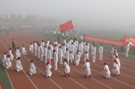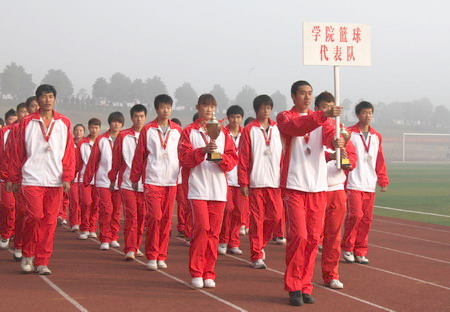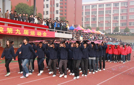 在庄严隆重的升旗仪式之后,学院院长刘建湘教授致开幕辞,他首先代表学院向第九届运动会的召开表示热烈的祝贺,向所有参加运动会的裁判员、运动员致以良好祝福,并向筹备这次盛会的全体工作人员表示衷心感谢。他说,学院体育事业的发展昭示着学院整体形象的上升水平,显现了校园的人文精神和文明风采,展示了学院和谐、安定和壮大的发展前景。学院坚持以人为本,科学发展,投入了大量资金用于改造和完善体育基础设施,着力为同学们提供良好的体育锻炼平台,提高学生的身心素质。他希望同学们本着友谊第一、比赛第二的原则,赛出友谊、赛出成绩、赛出风格。