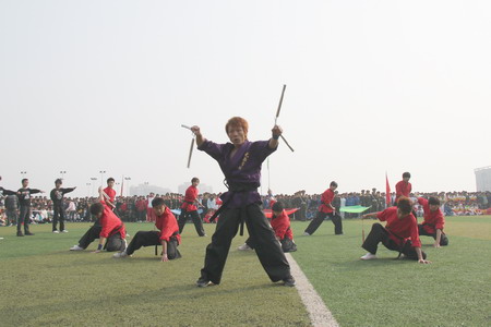 帅气威武的双截棍表演