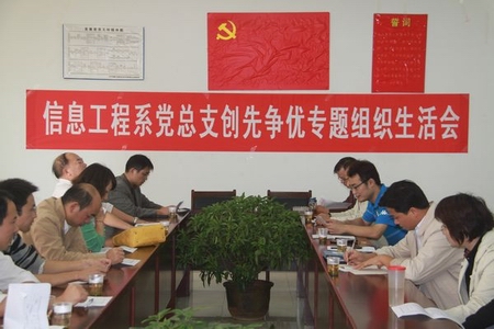 10月19日下午,信息工程系党总支教工支部创先争优组织生活会在党员活动室召开,党总支全体职工党员和部分群众教师参加了会议,会议由信息工程系党总支副书记周猷主持,信息工程系蹲点院领导副院长王柏林特邀出席。