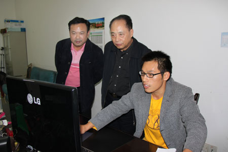 学院党委副书记周立华(左一)陪同督查组组长唐展生(左二)查看我院就业工作场所