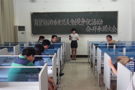 9月7日下午,商贸旅游系党总支创先争优活动召开公开承诺大会。学院党委副书记龙承海出席会议,大会由商贸旅游系党总支委员苏茂芳主持,商贸旅游系全体党员参加了此次大会。