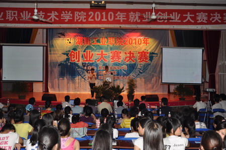 6月22日晚,我院2010年“创业大赛”总决赛在大学生活动中心举行。大赛由院招生就业指导中心主办、商贸旅游系承办。院党委副书记周立华出席比赛。担任此次大赛的评委有浮石传播有限公司总经理、著名作家胡刚先生、湖南继善投资有限公司总经理黄杨先生以及我院校友、新康辉国际旅行社执行总裁杨海平先生。