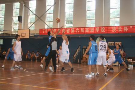 6月3日下午,2010年湖南省高职学院第六届“院长杯”教职工篮球赛在长沙环境保护职业技术学院落下帷幕。我院最后一战对阵湖南机电职业技术学院,学院党委书记廖洪元亲自披挂上阵,极大鼓舞了队员的参赛士气。第一节我院以20:12先下一城。随后,我院队员越战越勇,李中武老师的抢断,年轻队员王沫漂亮的三分,第二节打成了42:28,比分被逐步拉开。随后的比赛时间我院一直保持良好竞技状态,副院长刘继平更是以两分投篮压哨,并将比分锁定为116:94,赢得了宝贵的胜利。