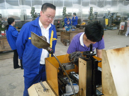 6月7日下午,首批全省中等职业学校专业教师培训学员来到我院实习工厂进行为期一周的生产性实训。