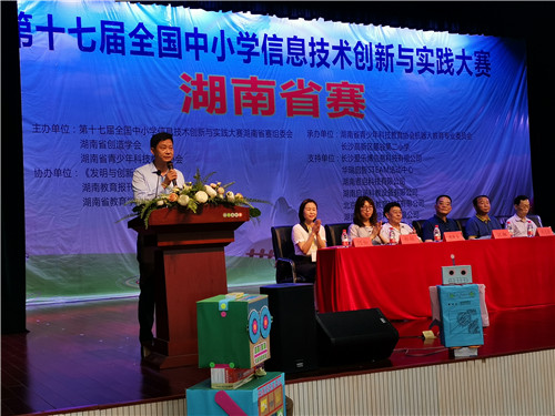 比赛由湖南省组织委员会、湖南省创造学会、湖南省青少年科技教育协会共同主办。湖南省赛组委会主任、湖南省创造学会理事长、我校校长向罗生,湖南省赛组委会副主任、湖南省青少年科技教育协会理事长、湖南第一师范学院党委副书记刘志敏,原湖南省科协副主席廖任强,湖南省创造学会副理事长、湖南省教科院副院长赵雄辉,湖南省创造学会副理事长、中国发明协会中小学创造教育分会会长谭迪熬等出席大赛开幕式。