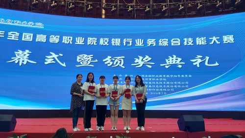 本网讯 7月4日,由全国金融职业教育教学指导委员会主办的2019年全国高职院校银行业务综合技能大赛在山东外贸职业学院泰安基地举办,来自全国的24个省市自治区的111支队伍444名选手参赛。我校派出由经济管理学院院长刘国莲担任领队,刘昕妍、唐瑶老师担任指导老师,金融管理专业陈瑜、戴佳洋、周阳琳、彭英燕4名同学组成的代表队参加了此次比赛,最终以全国第五名的好成绩,荣膺竞赛一等奖。指导老师刘昕妍、唐瑶荣获“优秀指导教师”奖。