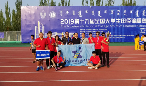 本网讯 7月31日,第19届全国大学生田径锦标赛在内蒙古落下帷幕,我校派出8男1女9名队员参赛。经过激烈比拼,我校学子在比赛中获得了高职院校组2金1银2铜,男子团体总分第一的好成绩。