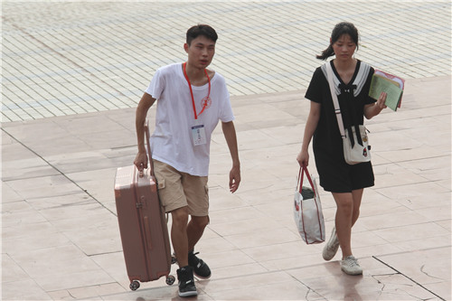 “原本以为腿伤的缘故会导致今天的报到非常麻烦,但学校的志愿者们爱心接力,在他们帮助下,我迅速完成了报名工作,真的太感动了。”来自信息工程学院的新生师新宇因为腿伤的缘故需拄拐杖,行动不方便。学校迎新工作人员为他开辟了“绿色通道”,迅速完成了报到流程。“下午两点在图书馆下车后,学校的志愿者和老师看到我们就马上走了过来。”师妈妈一边和学生记者交流一边回忆着刚刚的场景,说完为学校的志愿服务工作竖起了大拇指。
