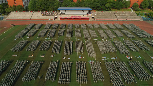 至此,我校2019级新生在各营教官带领下,为期十四天的军训生活正式开启。