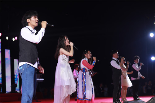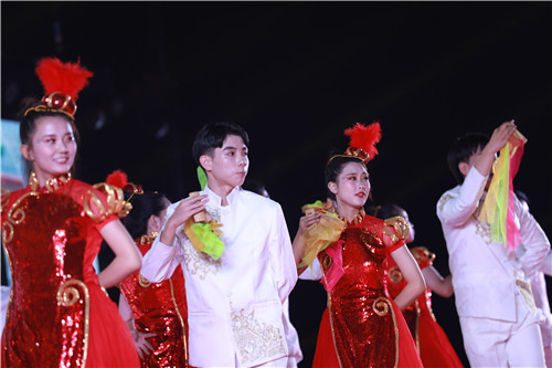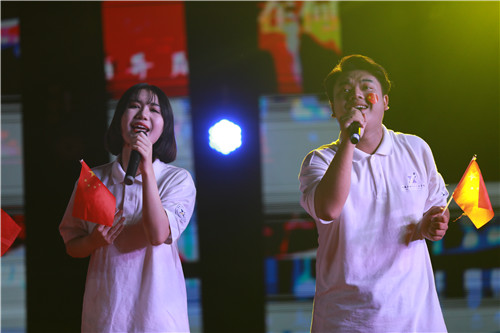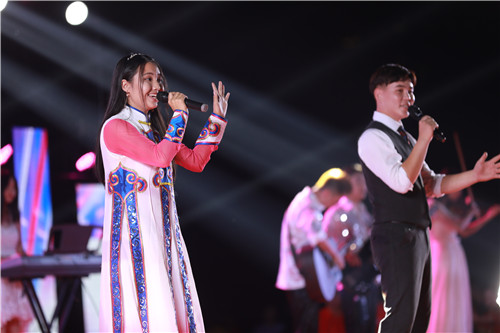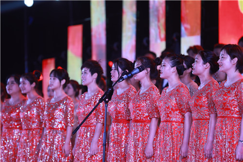 来自蒙古的留学生带来歌曲《远走高飞》,让人耳目一新的异域风情赢得现场阵阵欢呼声;大学生艺术团舞蹈队带来的音乐快板《新时代扬帆起航》,诉说了70年来中国发生的翻天覆地的变化,民族自豪感在现场蔓延开来;一曲《在灿烂的阳光下》燃翻了现场,全场观众情不自禁的跟着合唱。晚会最后在全体演职人员、观众合唱的《我爱你中国》中圆满落下帷幕。