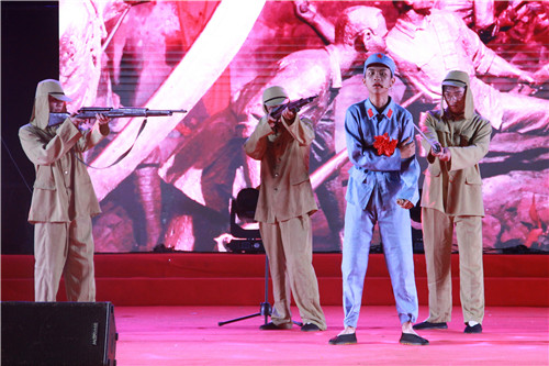 由大学生艺术团舞蹈队带来开场舞《祖国你好》迅速引燃现场气氛;工院之声广播站带来的《从苦难走向辉煌》将音乐、画面、朗诵相结合,时而铿锵、时而婉转,把现场观众带入那个战火纷争而青年不言放弃的年代,将革命烈士的伟大事迹娓娓道来;党校学生代表和师生代表带来的《黄河大合唱》和《歌曲联唱》(英雄赞歌、怀念战友、我们的生活充满阳光)歌声催人奋进,气势振奋人心;黑马话剧社演绎的《不朽的军魂》,将战士们的英勇无畏展现得淋漓尽致,现场观众无一不被震撼和感动。