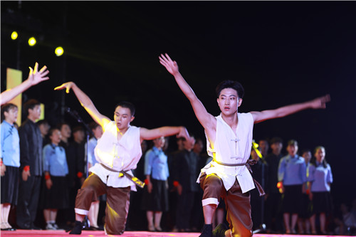 由党委宣传部和团委联合录制的《工院二十四小时》视频中,记录了每一个工院人追梦的足迹;紧接着,大学生艺术团带来《我们都是追梦人》唱出了每一个工院人追梦的心声;黑马话剧社带来的舞台剧《中联一课》,剧情取材于我校杰出校友——“中国汽车起重机调试第一人”龙卫国的故事,主旨弘扬“工匠精神”,号召青年学子以推动时代发展为己任而不断努力;由师生代表带来的一曲《时代赞歌》歌颂了伟大新时代,展现出对祖国的赞美之情。