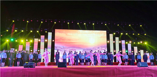 本网讯 9月27日晚,我校田径场上数千个挥动的荧光棒和手持红旗汇成了一片星海,照亮了一个特别的夜晚。“我和我的祖国”庆祝新中国成立70周年暨2019年迎新文艺晚会在这里盛大举行。