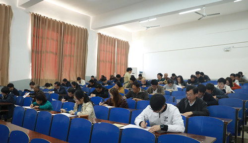 本网讯 10月29日下午,我校在第一教学楼1201教室组织开展“不忘初心、牢记使命”主题教育知识测试,全体中层及以上领导干部、党支部书记、组织员共90余人参加测试。