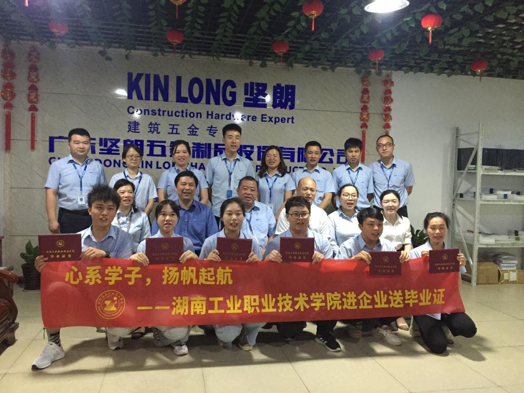 本网讯 “各位同学从老师手上接过毕业证的那一刻起就成为了我们的校友,希望你们在企业踏实工作,多回母校看看!”商务贸易学院党总支书记杨学文亲切叮咛毕业生们。6月16日上午,商务贸易学院党政领导、教研室主任及毕业班班主任一行来到广东坚朗集团长沙分公司慰问在该公司工作的学生,并送上毕业证。广东坚朗集团长沙分公司总经理王文红,各销售区经理和坚朗订单班毕业生参加了仪式。