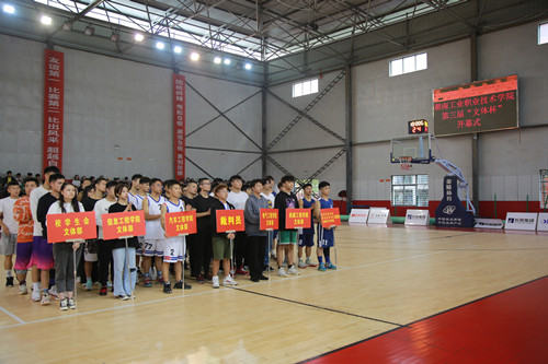 本网讯 10月13日下午,我校第三届“文体杯”篮球赛在训练馆正式开幕。体育艺术部部长周文、副部长李中武、参赛队伍、学生啦啦队参加开幕式。