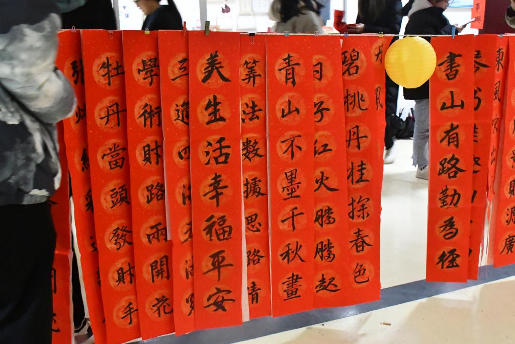 据悉,本次活动由送春联和作品展示两个部分组成。开幕式之后,同学随即参与到“猜诗名”“投壶”“送春联集赞”等活动中,现场人气满满,热闹非凡。